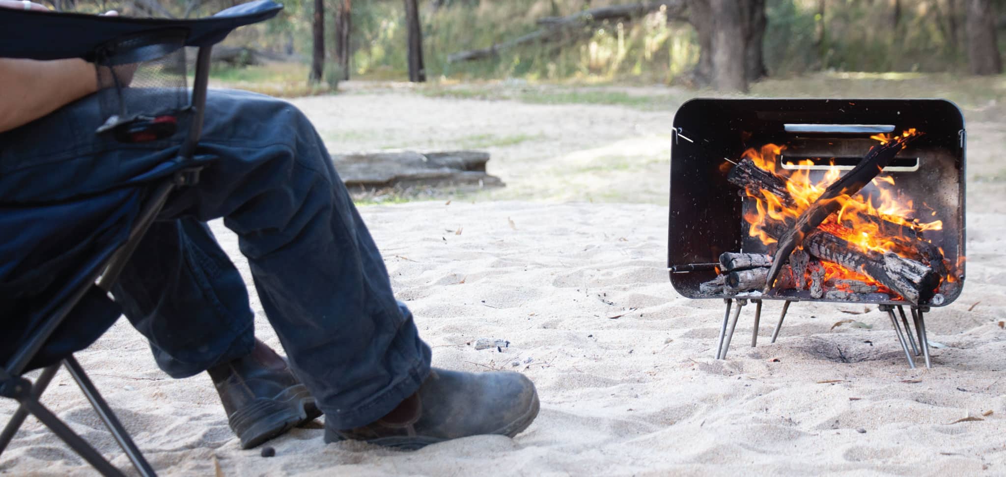 No tools, no problem. Other sheet metal fire pits that require 4 hands to assemble, The Bush Telly’s “hinge pin” design means that it takes less than 60 seconds to assemble. Unfold the legs, slide the back panel on and place the top on. The campfire is ready quicker than that first beer is cracked.
