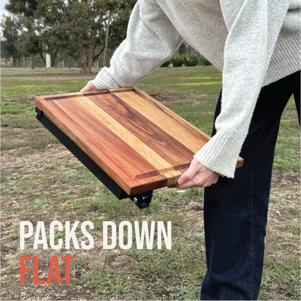 No tools, no problem. Other sheet metal fire pits that require 4 hands to assemble, The Bush Telly’s “hinge pin” design means that it takes less than 60 seconds to assemble. Unfold the legs, slide the back panel on and place the top on. The campfire is ready quicker than that first beer is cracked.